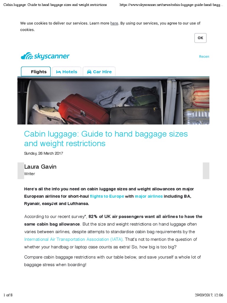 Cabin Luggage Guide To Hand Baggage Sizes And Weight Restrictions