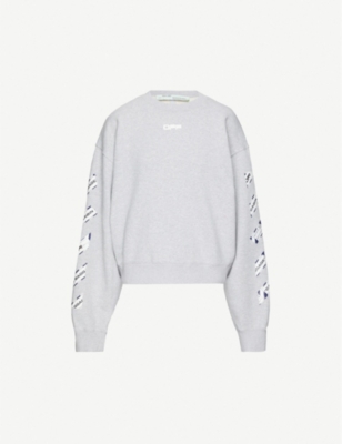 Featuring a crew neck long sleeves a printed logo and a slogan detail. Off white slightly off womens fall winter 2020. Designer style id. Marken kennzeichen an den seiten aufgedrucktes logo hinten rundhalsausschnitt lange aermel und aufgedrucktes logo vorne.